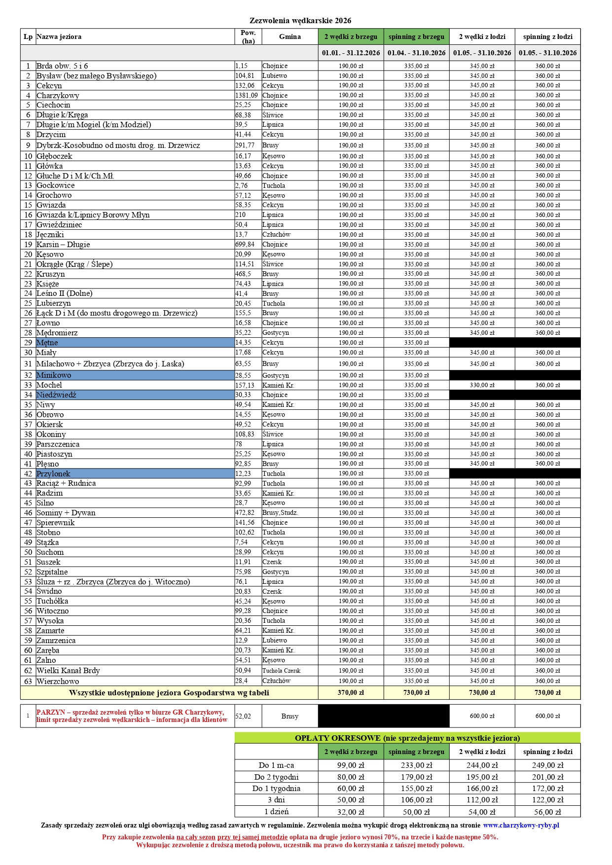 Gospodarstwo Rybackie w Charzykowych Spółka z o.o. informuje, że będziemy sprzedawali zezwolenia na wędkowanie w 2026 roku